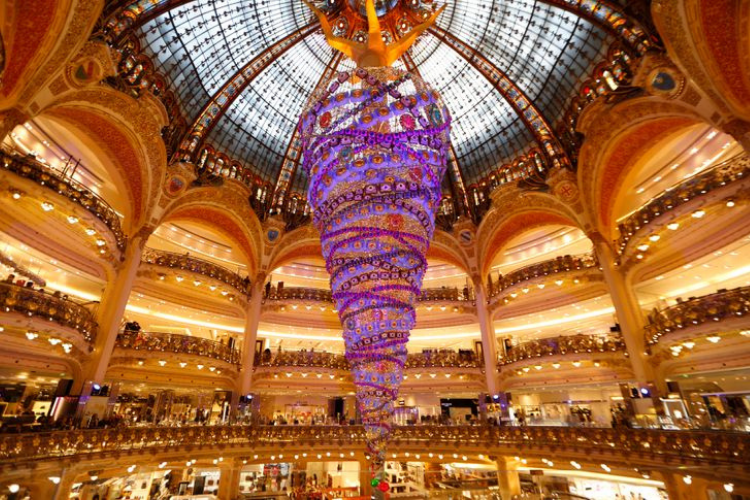 ohon Natal terbalik sepanjang dua puluh lima meter ini menghiasi pusat perbelanjaan Prancis, Galeries Lafayette. Pengunjung benar-benar dibuat takjub bukan hanya karena desain, namun juga pemosisian pohon yang terbalik seperti lampu gantung!