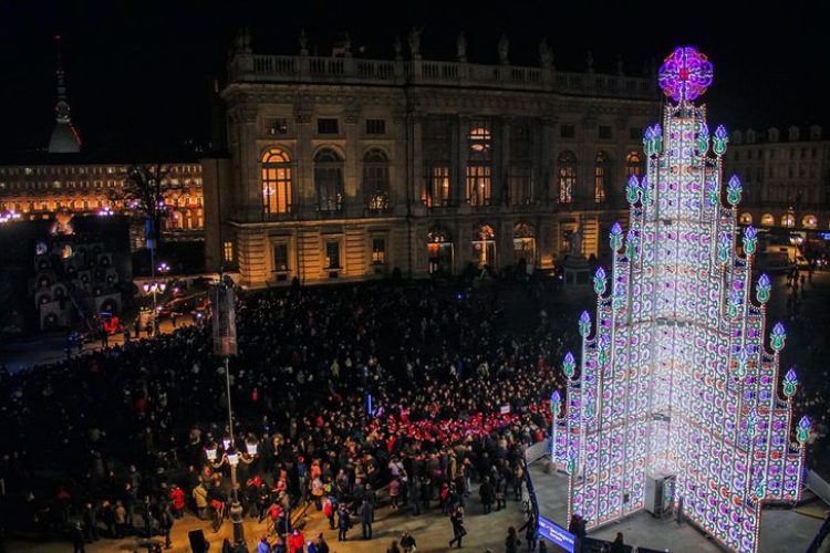 Pohon Natal yang sangat asli dan indah ini terletak di kompleks halaman Piazza Castello, Turin, Italia. Berwujud seperti tiga dimensi, pohon ini didominasi dengan LED berwarna putih.