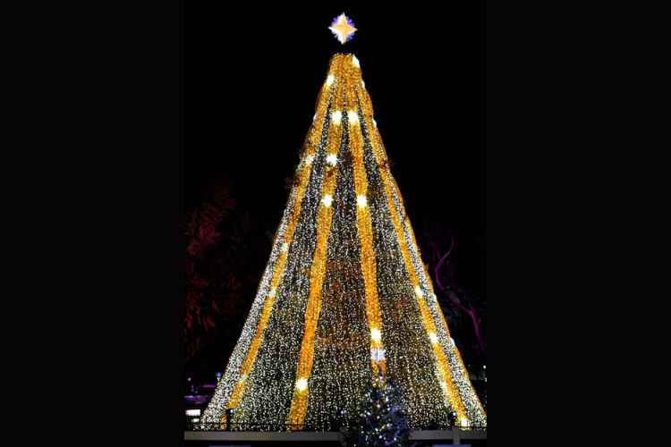 Ketinggian pohon Natal unik yang dibuat dengan menggunakan lampu LED ini adalah sekitar 36 meter. Sebulan sebelum liburan, terdapat pertunjukan cahaya di sini setiap setengah jam setelah matahari terbenam.