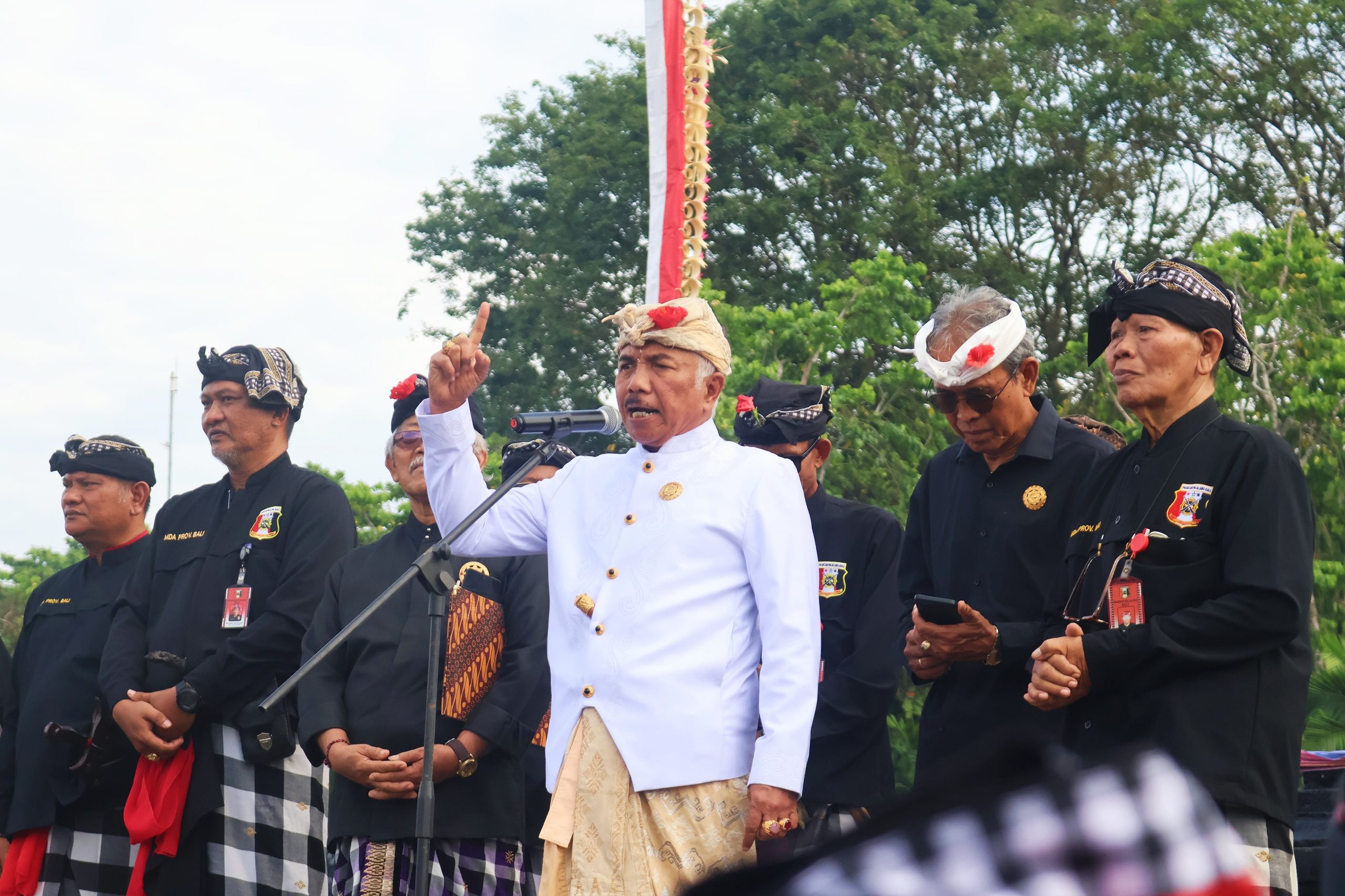 “Pecalang Bali sejak leluhur sudah menjaga Bali, nindihin gumi Bali. Pecalang Bali menolak kriminalisme, premanisme dan sikap anarkis yang dilakukan preman berbaju ormas dan berkedok ormas, “ kata Ida Penglingsir Agung Putra Sukahet.