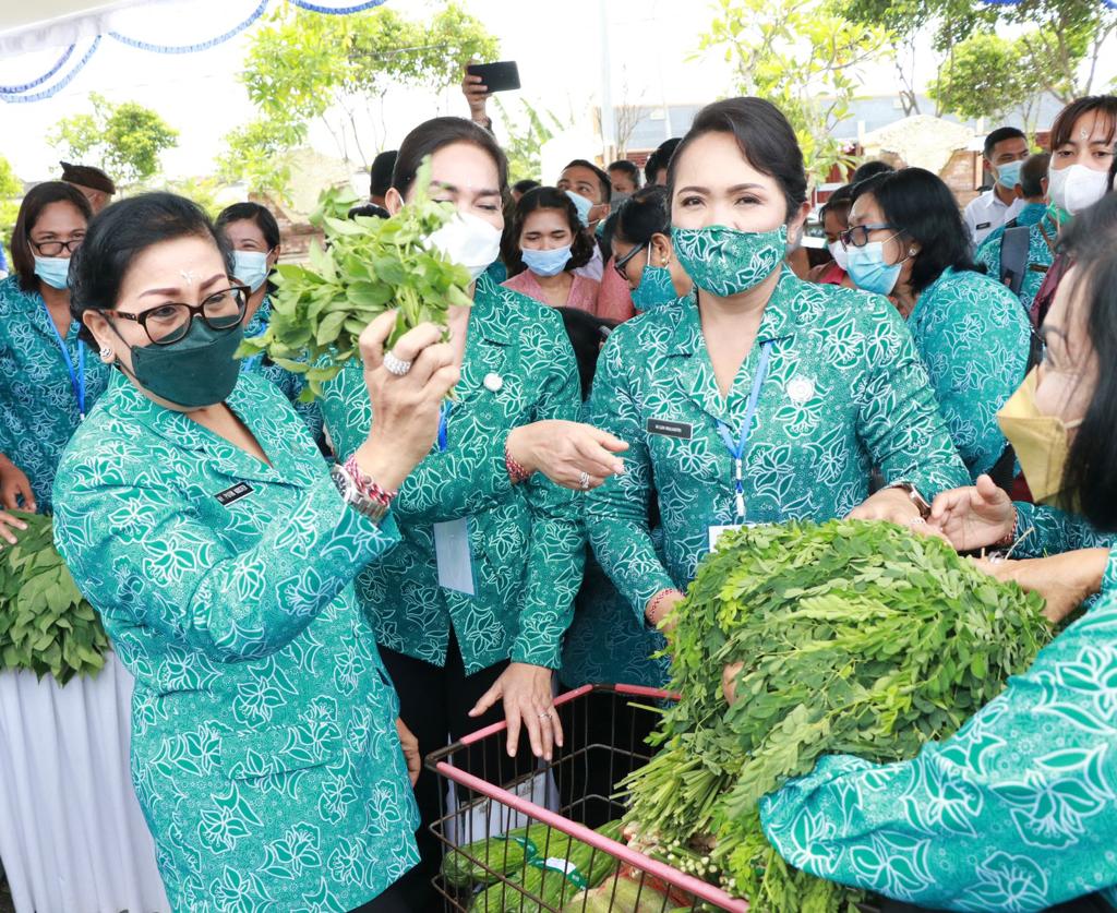 Sebelumnya Ketua TP PKK Kabupaten Jembrana Ny. Gst. Ayu Kt. Candrawati Tamba menyampaikan sambutan selamat datang sekaligus terima kasih kepada Ketua TP PKK Provinsi Bali atas terlaksananya program Pasar Rakyat tersebut. Menurutnya gerakan seperti ini merupakan wujud kepedulian dan gotong-royong dalam bentuk belanja dan berbagi.