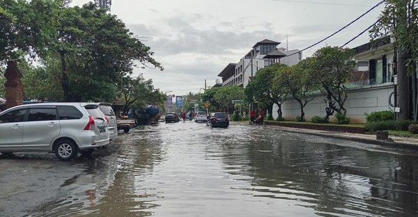 Menurutnya, banjir seusai hujan lebat di Jalan Pantai Kuta jarang terjadi. Banjir yang sejak tadi pagi menggenang karena debit air Sungai Tukad Mati, Kuta, sudah penuh akibat hujan semalam.