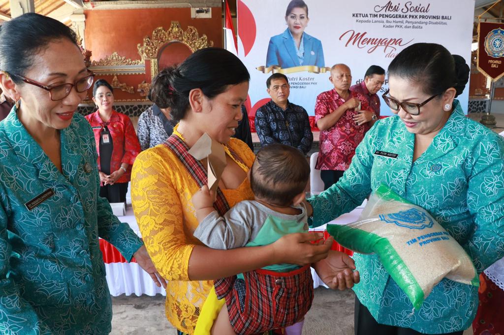 Dalam aksi sosial tersebut Ketua Tim Penggerak PKK Provinsi Bali, Ny. Putri Koster menyampaikan bahwa kegiatan Aksi Sosial Menyapa dan Berbagi ini bertujuan untuk melihat langsung keadaan dan kondisi masyarakat Bali di masing-masing daerah sambil menyerahkan bantuan kepada masyarakat kurang mampu. Bantuan tersebut menurutnya merupakan titipan dari Gubernur Koster untuk dapat disalurkan kepada lansia, ibu hamil, balita, penyandang disabilitas maupun kader PKK yang masih pra sejahtera melalui Ketua Tim Penggerak PKK Provinsi Bali.