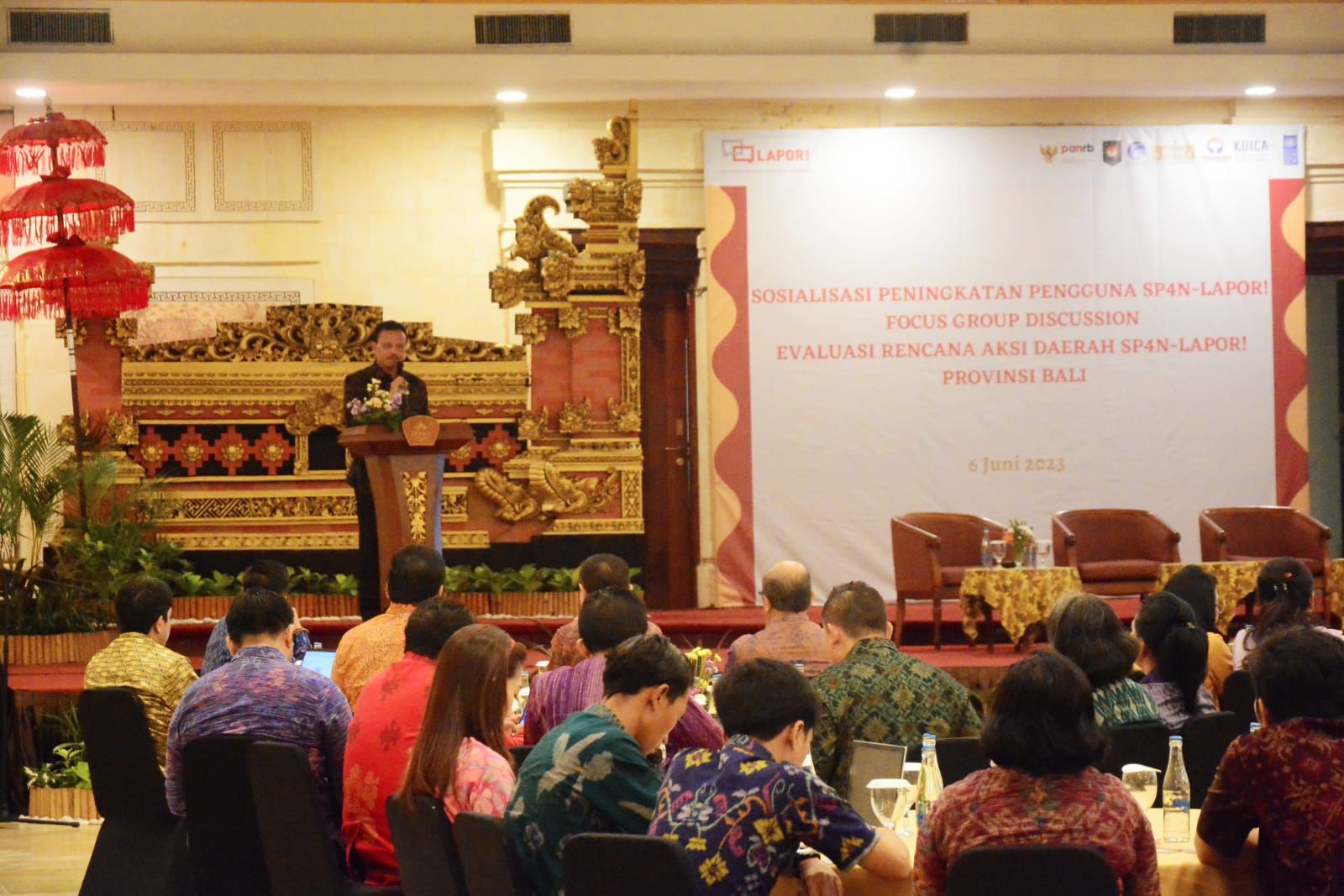 Dalam, acara yang dirangkaikan dengan Forum Group Discussion (FGD), Sekda Dewa Indra menyampaikan bahwa Terkait pengelolaan pengaduan, Presiden kita Bapak Joko Widodo mengamanatkan untuk memberikan pelayanan publik yang menekankan pada kecepatan, inovatif dan berorientasi pada hasil. Pengaduan merupakan salah satu elemen utama dalam percepatan perbaikan kualitas pelayanan publik, dimana pengaduan menjadi sarana bagi masyarakat untuk berpartisipasi secara aktif dalam proses perbaikan kualitas pelayanan publik melalui penyampaian aspirasi, saran dan pengaduan. Untuk itu, melalui SP4N, diharapkan terbentuk pengelolaan pengaduan yang terpusat, mudah, efektif, efisien dan terpenuhinya prinsip no wrong door policy.