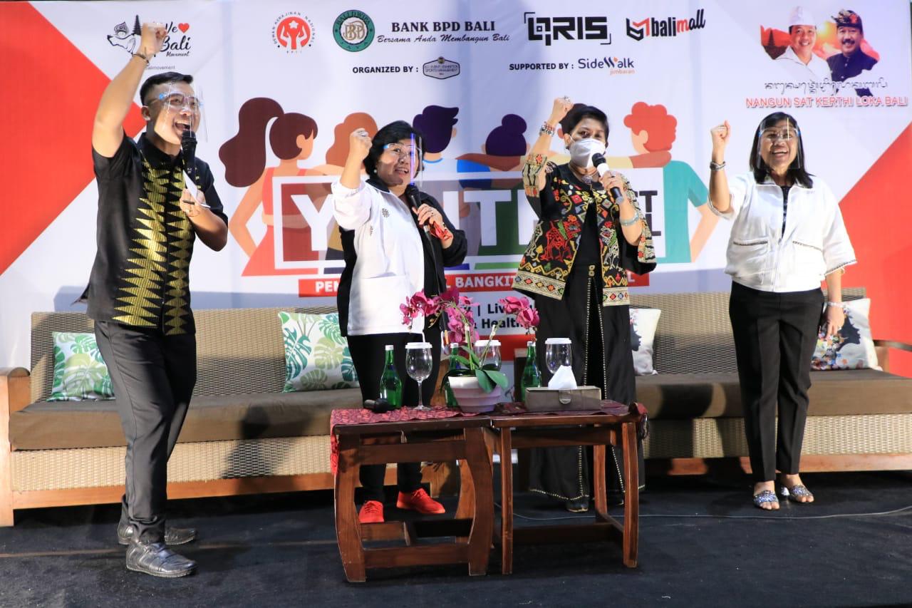 Adapun sejumlah narasumber yang turut tampil bersama Ny Putri Koster yakni Ida Ayu Tri Rasmiwinari (Perwakilan Bank BPD Bali) dan Ni Wayan Sri Ariyani (CEO Baliyoni Group).Beberapa point yang disampaikan saat Talk show “Solusi UMKM Milenial di Era Digital”. Ketua Dekranasda bali, Ny Putri Koster menegaskan bahwa Kaum milenial adalah generasi yang kaya dengan ide dan kreatif di samping mereka juga menguasai informasi dan teknologi digital secara baik. Sehingga hasil kerajinan yang nantinya siap dipromosikan, akan langsung diunggah dengan seni yang dapat menarik mata konsumennya.