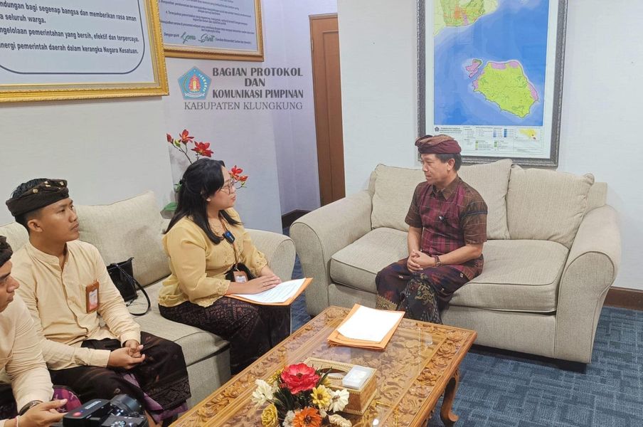 BALIPUSTAKANEWS, KLUNGKUNG – Bupati Klungkung I Nyoman Suwirta menerima audiensi PT. Jamkrida Bali Mandara bertempat di Ruang Kerja Kantor Bupati Klungkung, Kamis (4/5). Audiensi tersebut dilaksanakan dalam rangka meminta testimoni terkait kinerja PT. Jamkrida Bali Mandara yang selama 12 tahun beroperasi dan mengenai penerbitan buku 12 Tahun Jamkrida Bali.