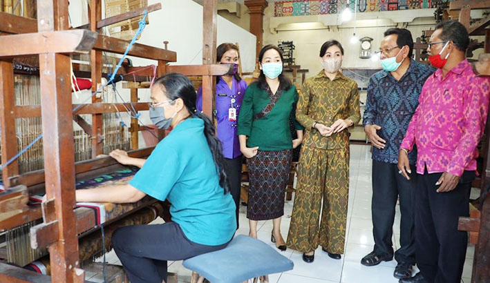 BALIPUSTAKANEWS – Di masa sulit seperti ini, para pengrajin harus pintar-pintar membaca situasi. Tidak bisa lagi bertahan pada satu produk kerajinan saja, harus berinovasi agar mampu bertahan di masa pandemi Covid-19. Hal ini diungkapkan oleh Ketua Dekranasda Kabupaten Gianyar, Ny Surya Adnyani Mahayastra di sela-sela kunjungan pembinaan ke sejumlah pengrajin di Kecamatan Blahbatuh, Gianyar, Senin (10/8/2020).