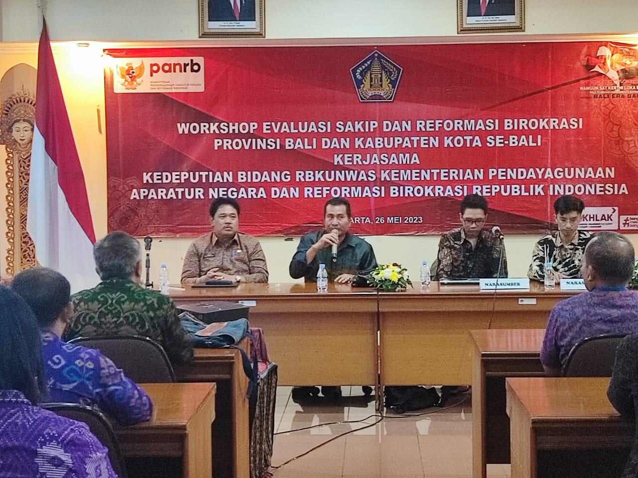 “Saya mengharapkan adanya dukungan semua pihak agar pelaksanaan workshop SAKIP dan RB dapat berjalan dengan baik dan mampu meningkatkan kualitas evaluasi sehingga diharapkan semua Instansi Pemerintah daerah di Provinsi Bali di Tahun 2023 ini dapat meningkatkan capaian Nilai SAKIP dan RB yang lebih baik atau menuju ke A,” harap Dewa Indra. Bertindak selaku pemateri dalam pertemuan ini Pengelola Akuntabilitas Kementerian PAN RB Fernando Silalahi dan Analis Kebijakan Pertama Kementerian PAN RB Muhammad Ryannasmara yang juga tim evaluator SAKIP KemenPAN RB.