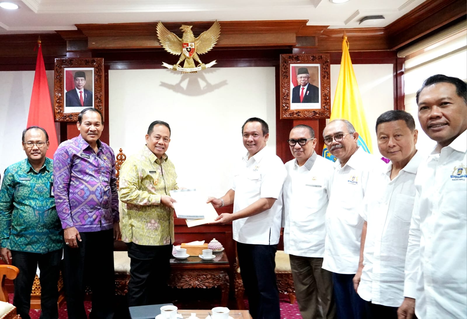 BALIPUSTAKANEWS, DENPASAR – Penjabat (Pj.) Gubernur Bali S.M. Mahendra Jaya menerima audiensi jajaran pengurus Kamar Dagang Indonesia (Kadin) Provinsi Bali bertempat di Ruang Tamu Wakil Gubernur Bali, Kantor Gubernur Bali, Denpasar, pada Jumat (27/10/2023).