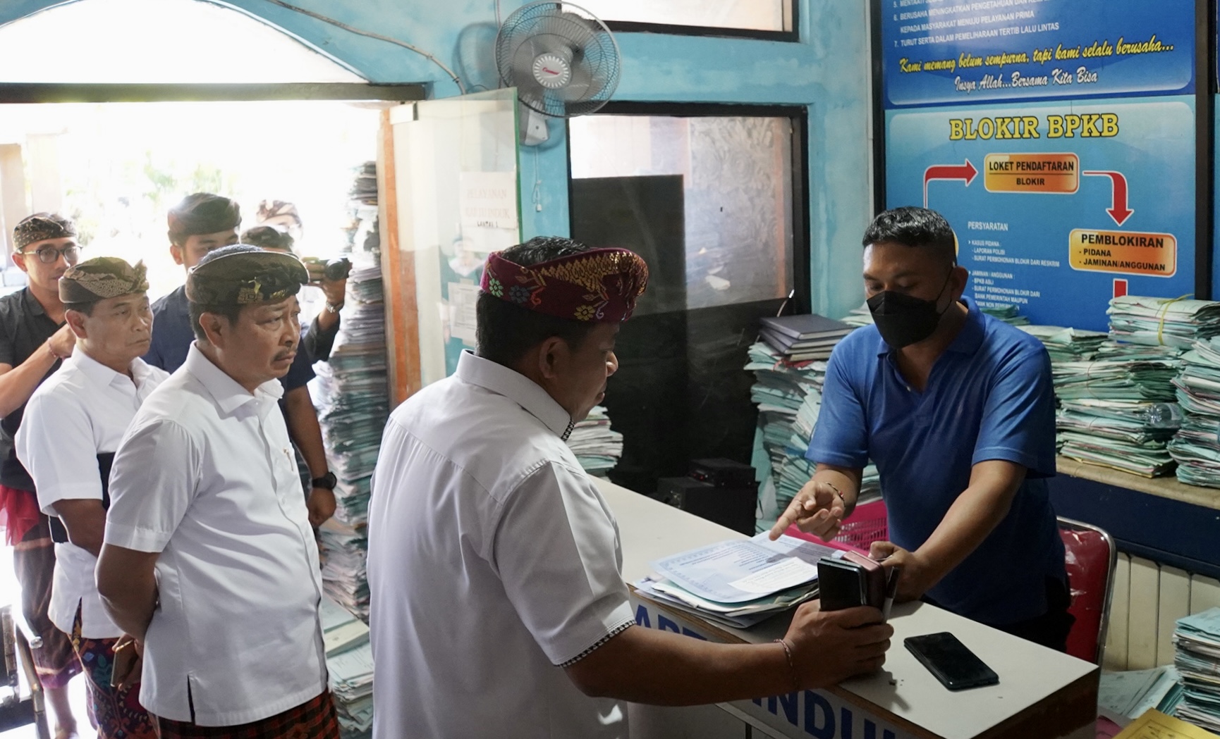 Pj. Gubernur Mahendra Jaya dalam kesempatan tersebut juga mengecek sejumlah fasilitas di Kantor Bapenda Bali serta UPT Samsat Denpasar yang berada di areal yang sama. Pj Gubernur nampak berinteraksi langsung guna mengetahui alur kerja dan waktu yang diperlukan untuk mengurus pembayaran pajak kendaraan bermotor hingga fasilitas penunjang lain bagi masyarakat. (AP)
