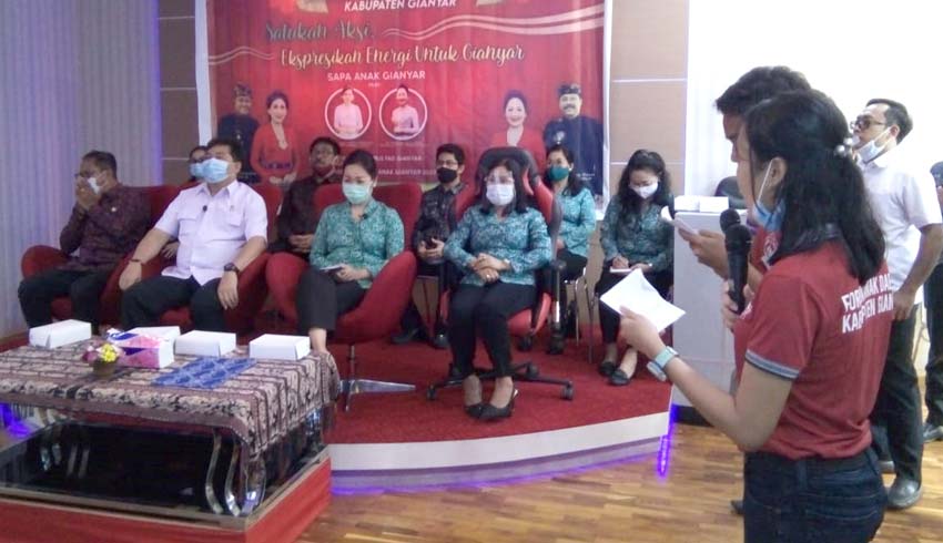 Pada kesempatan itu, Duta Anak Gianyar IB Willie Pramudita dan Gusti Ayu Made Mirah Rismayanti menyampaikan suara anak Gianyar hasil sidang FAD 2020, disaksikan oleh perwakilan anak-anak se-Kabupaten Gianyar secara virtual.