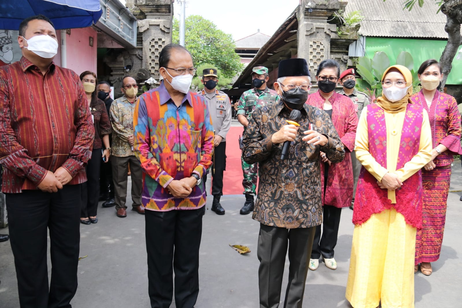Menanggapi hal tersebut, Wapres Ma’ruf Amin yang juga didampingi oleh Ibu Hj Wury Ma’ruf Amin menyampaikan bahwa saat ini Pemerintah Pusat khususnya Pemerintah Provinsi Bali di bawah kepemimpinan Gubernur Bali Wayan Koster terus berusaha untuk membangkitkan perekonomian Bali, tentunya dengan berbagai kebijakan yang telah dikeluarkan.