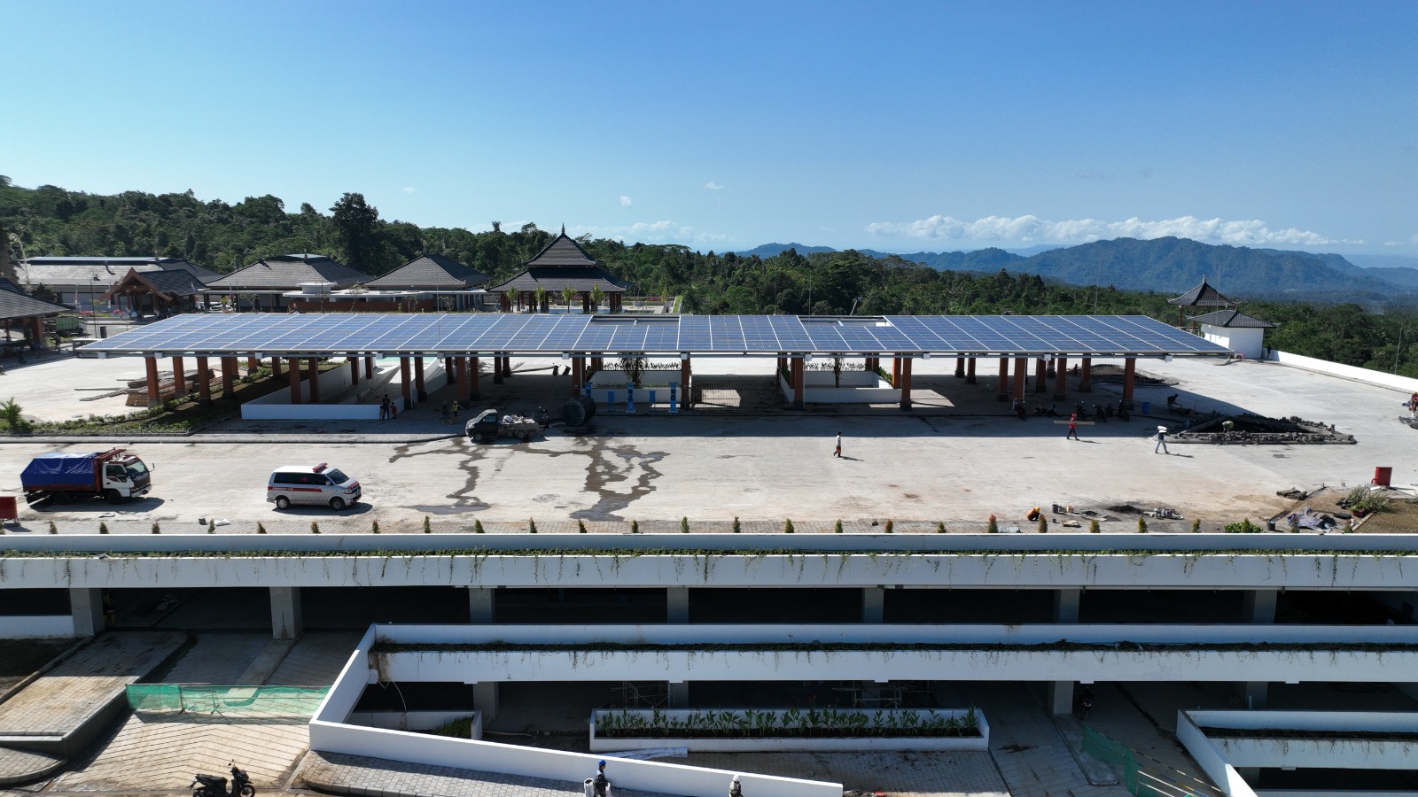 Dasar, perpindahan lantai dilakukan setelah lantai dibawahnya penuh; 4) Semua lantai dilengkapi sistem pemantauan digital dengan indikator lampu pada setiap slot, warna hijau menunjukkan slot masih tersedia dan warna merah menunjukkan slot sudah terisi; 5) Setiap lantai parkir terdiri atas beberapa blok yang dilengkapi kode blok pada pilar; 6) Tersedia Fasilitas Tiket Parkir Elektronik untuk masuk dan keluar Gedung Parkir; 7) Tersedia Fasilitas Toilet di setiap lantai, termasuk Toilet Khusus untuk Difabel, yang terpisah untuk laki-laki dan perempuan, gratis; 8) Tersedia tangga dan elevator sebagai penghubung setiap lantai; 9) Tersedia Petugas Parkir yang mengatur untuk masuk-keluar kendaraan; dan 10) Atap gedung parkir memakai Panel Listrik Tenaga Surya (PLTS), dengan kapasitas 400 Kwh.