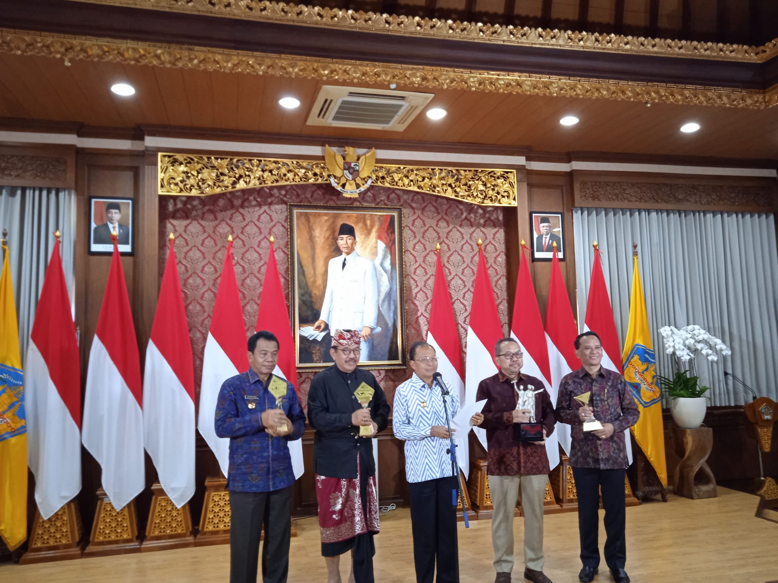BALIPUSTAKANEWS, DENPASAR – Bali berhasil meraih tiga penghargaan sekaligus dalam ajang perdana Championship TP2DD 2022, yaitu juara 1 TP2DD Provinsi terbaik regional Jawa – Bali dan juara 1 TP2DD Kabupaten terbaik regional Jawa – Bali, serta BPD Bali sebagai Bank Rekening Kas Umum Daerah (RKUD) terbaik secara nasional. Sebagai apresiasi atas prestasi tersebut, Gubernur Bali beserta Wakil Gubernur Provinsi Bali, Tjok Oka Artha Ardhana Sukawati, Pejabat Bupati Buleleng Ketut Lihadnyana, Kepala Perwakilan Bank Indonesia Provinsi Bali, Trisno Nugroho, dan Direktur Utama BPD Bali, Nyoman Sudharma berkumpul bersama untuk merayakan keberhasilan Bali dalam ajang championship TP2DD tersebut di Jaya Sabha, Senin (19/12).