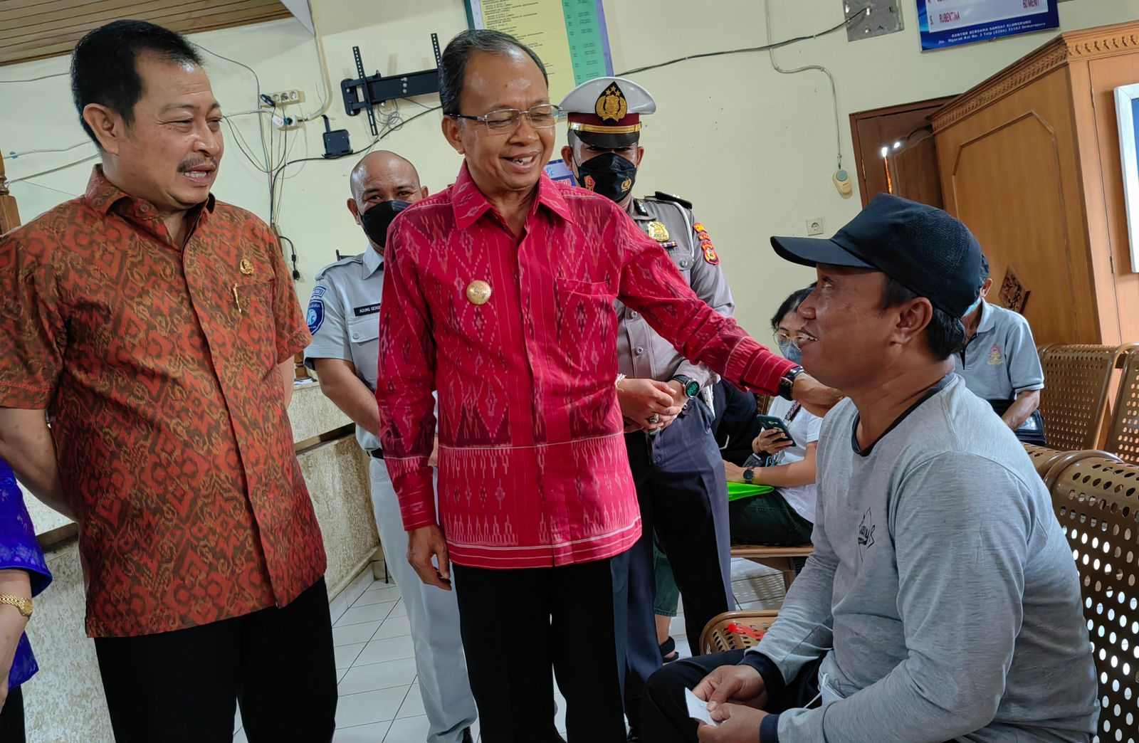 Setibanya di UPTD PPRD Provinsi Bali Kabupaten Gianyar dan Kabupaten Klungkung, Gubernur Bali jebolan ITB ini langsung menyambangi warga yang sedang melakukan transaksi Pajak Kendaraan Bermotor (PKB) hingga Bea Balik Nama Kendaraan Bermotor (BBNKB), sekaligus berbincang dengan wajib pajak untuk mengetahui apakah ada kendala atau tidak yang dihadapi selama melakukan proses transaksi dengan petugas Kantor UPTD PPRD Provinsi Bali di Kabupaten Gianyar dan di Kabupaten