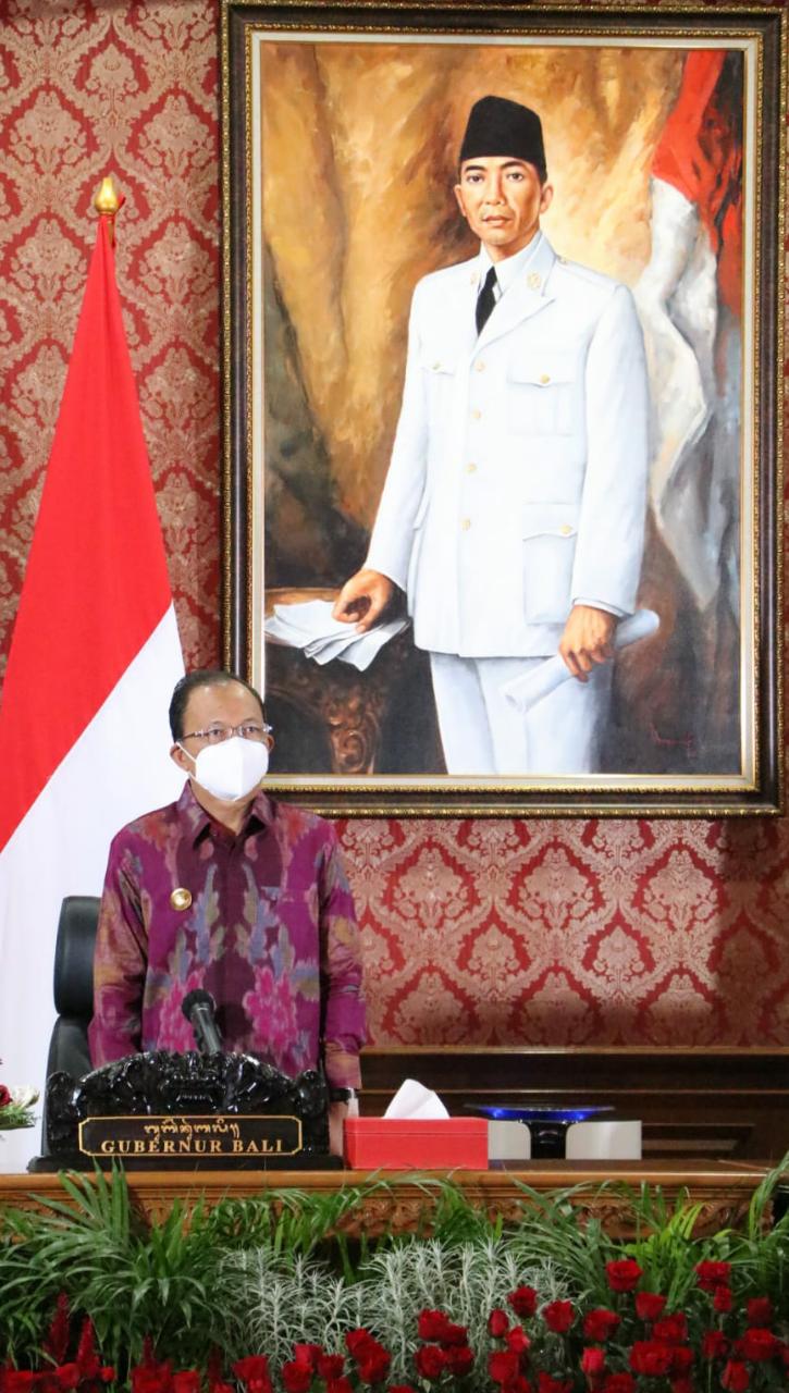 Hal itu disampaikan langsung, saat Gubernur Bali membuka Musyawarah Perencanaan Pembangunan (Musrenbang) Penyusunan Perubahan RPJMD Semesta Berencana Provinsi Bali tahun 2018-2023 secara virtual di Jayasabha, Denpasar, Senin (Soma Umanis, Bala) tanggal 19 Juli 2021 yang dihadiri juga oleh Direktur Regional I Kementerian PPN/Bappenas RI, Uke Mohammad Hussein, S.Si., MPP, Direktur Jenderal Bina Pembangunan Daerah Kementerian Dalam Negeri RI, DR. Hari Nur Cahya Murni, M.Si, dan Direktur Jenderal Perimbangan Keuangan Kementerian Keuangan RI, Drs. Astera Primanto Bhakti, M.Tax secara virtual.