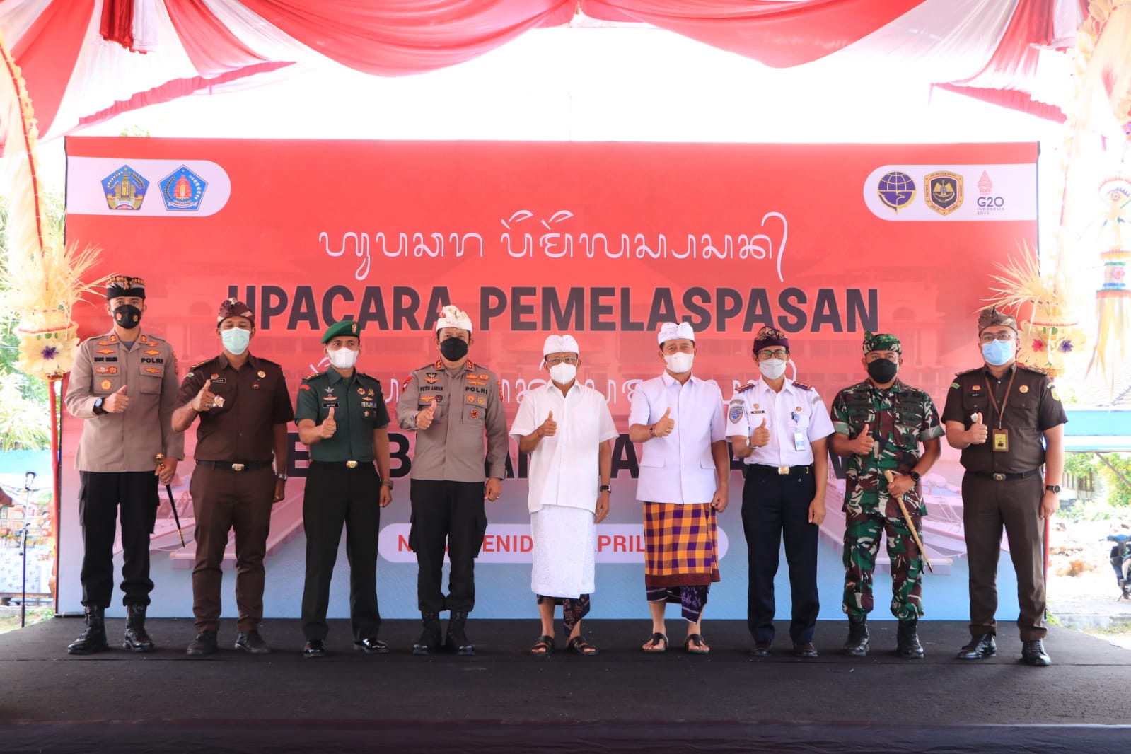 Upacara Pemlaspasan Pelabuhan Sampalan yang diiringi dengan Tari Baris Jangkang dan dirangkaikan dengan Upacara Pekelem ini secara langsung dipuput oleh Ida Mpu Buda Satya Yoga dan Ida Rsi Baghawan Dharma Sata Sida.