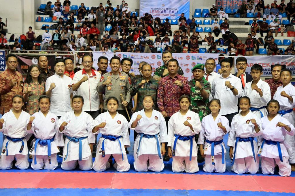 BALIPUSTAKANEWS,DENPASAR – Gubernur Bali, Wayan Koster secara resmi membuka Kejuaraan Terbuka Piala Gubernur Bali Tahun 2022 yang diselenggarakan oleh Lembaga Karate Do Indonesia (Lemkari) di GOR Lila Bhuana Denpasar pada, Jumat (Sukra Wage, Krulut) 22 Juli 2022 pagi yang dihadiri langsung oleh Kapolda Bali, Irjen Pol Putu Jayan Danu Putra, Ketua Pengurus Provinsi (Pengprov) Lemkari Bali, I Wayan Muntra, Kadisdikpora Provinsi Bali, KN. Boy Jayawibawa, dan Ketua Umum KONI Provinsi Bali, I Gusti Ngurah Oka