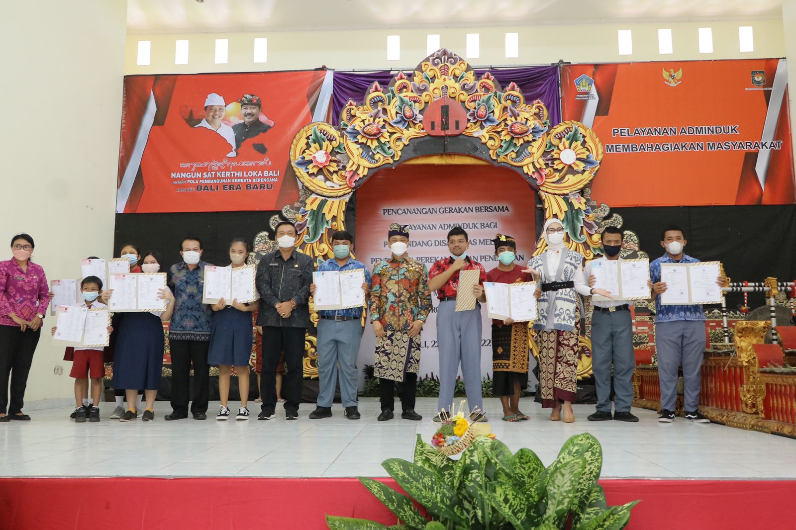 BALIPUSTAKANEWS,DENPASAR – Gubernur Bali Wayan Koster menyambut baik kegiatan pelayanan Administrasi Kependudukan Jemput Bola atau Jebol yang dirangkaikan dengan Pencanangan Gerakan Bersama Pelayanan Adminduk bagi Penyandang Disabilitas yang dilaksanakan hari ini, mengingat penyandang disabilitas merupakan salah satu subyek rentan dalam pelayanan Administrasi Kependudukan, sebagaimana diatur dalam Peraturan Menteri Dalam Negeri Nomor 11 Tahun 2010 tentang Pedoman Pendataan Penerbitan Dokumen Kependudukan bagi Penduduk Rentan Administrasi Kependudukan dimana Warga negara yang rentan dengan administrasi kependudukan adalah permasalahan dan perlu mendapatkan jaminan serta akses dokumen kependudukan melalui pendataan sebagai dasar penerbitan dokumen kependudukan. Hal tersebut terungkap dalam sambutan Gubernur Bali yang dibacakan oleh Kepala Dinas Pemberdayaan Masyarakat, Desa, Kependudukan dan Pencatatan Sipil Provinsi Bali Anom Agustina.