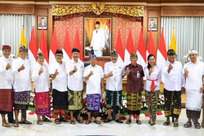 BALIPUSTAKANEWS,DENPASAR – Gubernur Bali, Wayan Koster menandatangani Kesepakatan Bersama dan Perjanjian Kerjasama antara Pemerintah Provinsi Bali, Gabungan Industri Pariwisata (GIPI) Bali, dan PT. Bank Pembangunan Daerah Bali tentang Teknis Pelaksanaan Penerimaan Kontribusi Wisatawan untuk Pelindungan Lingkungan Alam dan Budaya Bali, serta megukuhkan Unsur Penentu Kebijakan Badan Promosi Pariwisata Daerah Bali Tahun 2022-2026 di Gedung Gajah Jayasabha, Denpasar pada, Rabu (Buda Wage, Warigadean) 18 Mei 2022.