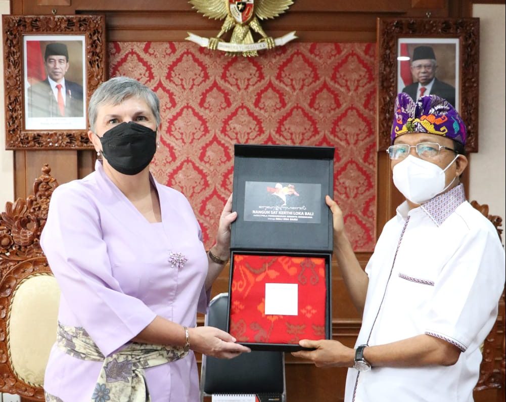 BALIPUSTAKANEWS,DENPASAR – Gubernur Bali, Wayan Koster menerima kunjungan kerja Duta Besar Australia untuk Perwakilan Indonesia, Penny Williams PSM di Kantor Gubernur Bali, Renon, Denpasar pada Kamis (Wraspati Pon, Kuningan) 18 Nopember 2021.