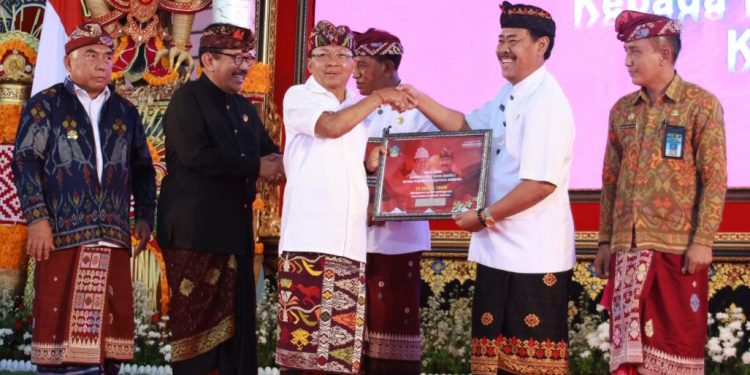 BALIPUSTAKANEWS, JEMBRANA- Ribuan masyarakat Kabupaten Jembrana bersama Bupati dan Wakil Bupati Jembrana, DPRD Bali Dapil Jembrana, Ketua dan Anggota DPRD Kabupaten Jembrana, Camat, Perbekel, Lurah, Bendesa Adat, Tokoh Puri, Tokoh Masyarakat, hingga Yowana se-Kabupaten Jembrana mengapresiasi kerja ekstra keras Gubernur Bali, Wayan Koster bersama Wakil Gubernur Bali, Tjokorda Oka Artha Ardana Sukawati dalam mengimplementasikan visi Nangun Sat Kerthi Loka Bali melalui Pola Pembangunan Semesta Berencana menuju Bali Era Baru yang dituangkan ke dalam 44 Tonggak Peradaban Penanda Bali Era Baru.
