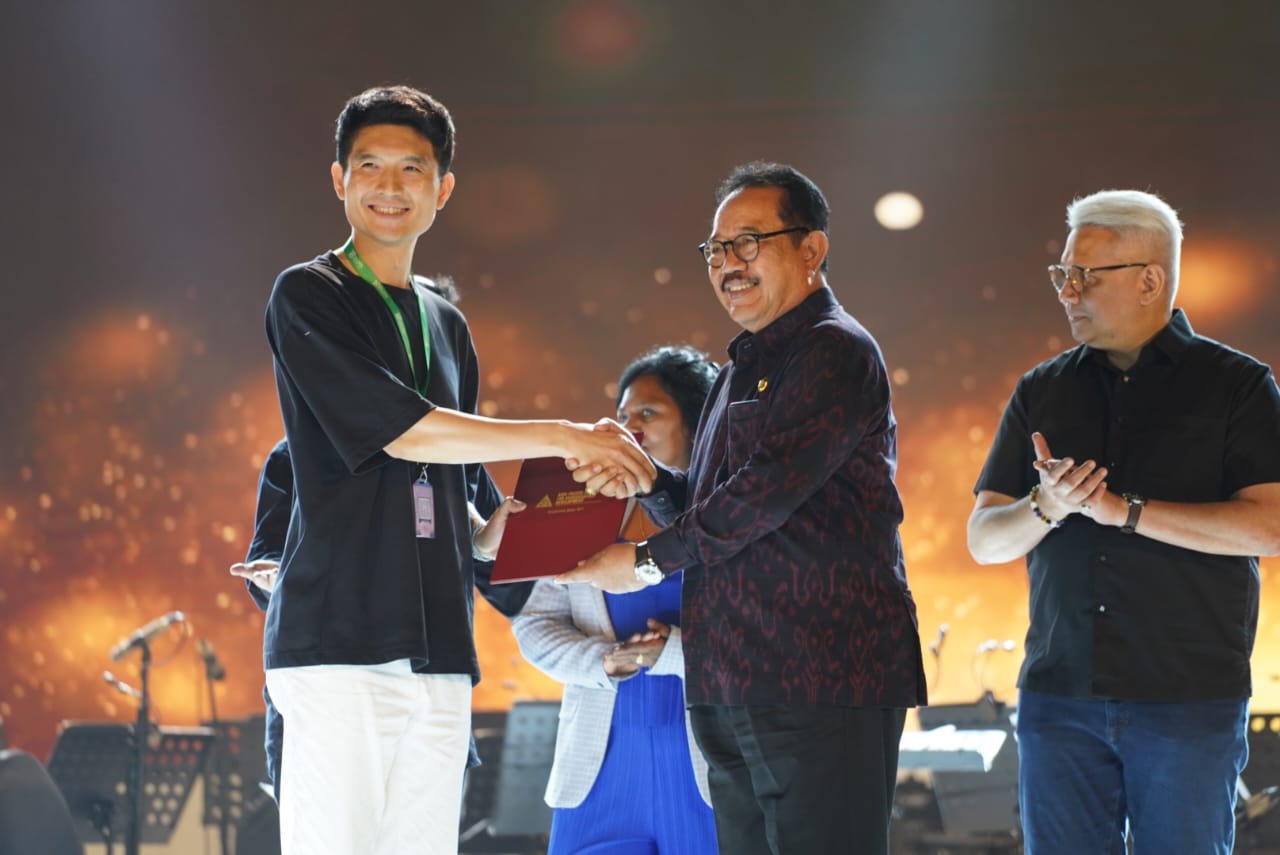 BALIPUSTAKANEWS, BADUNG – Wakil Gubernur Bali Tjokorda Oka Artha Ardana Sukawati mendapatkan kehormatan menyerahkan penghargaan Kategori Siaran Program Radio Terbaik Untuk Perdamaian kepada KBS Korea atas kemenangan program siarannya bertajuk To Fly Again, dalam acara Gala Dinner Asia Pacific Institute for Broadcasting Development (AIBD) International Awards di Grand Hyatt Resort, Nusa Dua, Badung, Selasa, (Anggara Wage, Sinta) 23 Mei 2023.