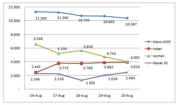 BALIPUSTAKANEWS,DENPASAR – Keseriusan pemerintah untuk mengendalikan kasus Covid-19 di Bali menunjukkan tren positif. Hal ini terlihat dari semakin menurunnya jumlah kasus aktif di Provinsi Bali dalam lima hari terakhir. Sejak hari Senin 16 Agustus 2021 hingga 20 Agustus 2021 kasus aktif di Provinsi Bali terus mengalami penurunan dari 11.303 kasus aktif menjadi 10.387 kasus aktif.