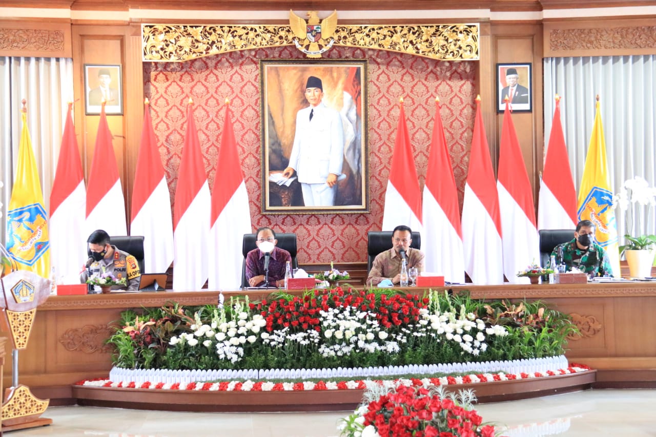 Gubernur Koster membeberkan bahwa dari sisi angka kasus pada daerah lain terhitung masih tinggi. Namun Bali sendiri masuk dalam daerah dengan penanganan yang baik dilihat dari angka kesembuhan yang lebih dari 91 persen lebih. “Kita nomor satu, lebih tinggi dari DKI Jakarta angka kesembuhannya. Untuk itu kita, provinsi hingga kabupaten harus tegas dan searah dengan instruksi pusat. Bapak Presiden bahkan lebih tegas lagi statement-nya bahwa keselamatan masyarakat adalah hukum tertinggi. Apa artinya? Kita di daerah harus ketat dan tegas untuk menjabarkan,” terang Ketua DPD PDI Perjuangan Bali ini.