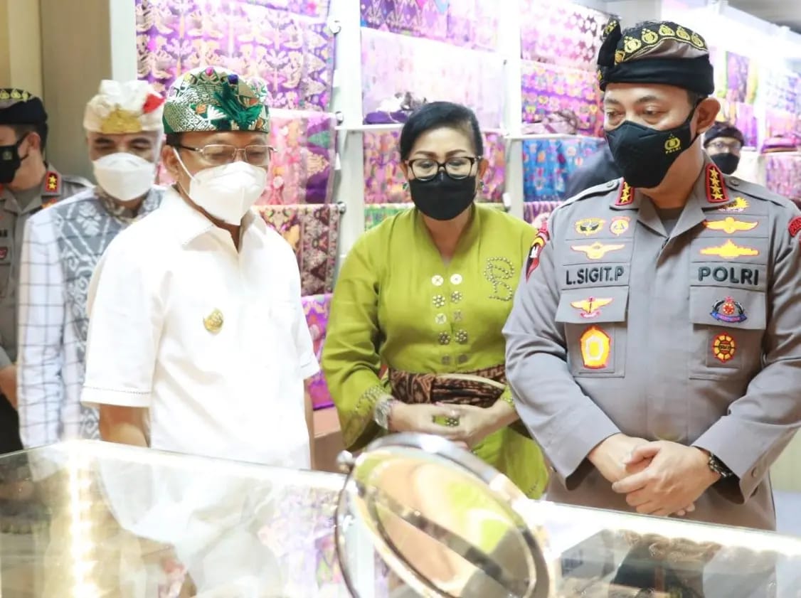 Jenderal Listyo Sigit Prabowo saat kunjungannya didampingi langsung oleh Gubernur Bali Wayan Koster dan Ketua Dewan Kerajinan Nasional Daerah (Dekranasda) Provinsi Bali mengatakan sangat bangga dengan gagasan, ide dan upaya memberikan peluang bagi perajin IKM dan UMKM untuk bangkit dan tetap berkreasi di tengah pandemi yang hingga saat ini belum juga berakhir.