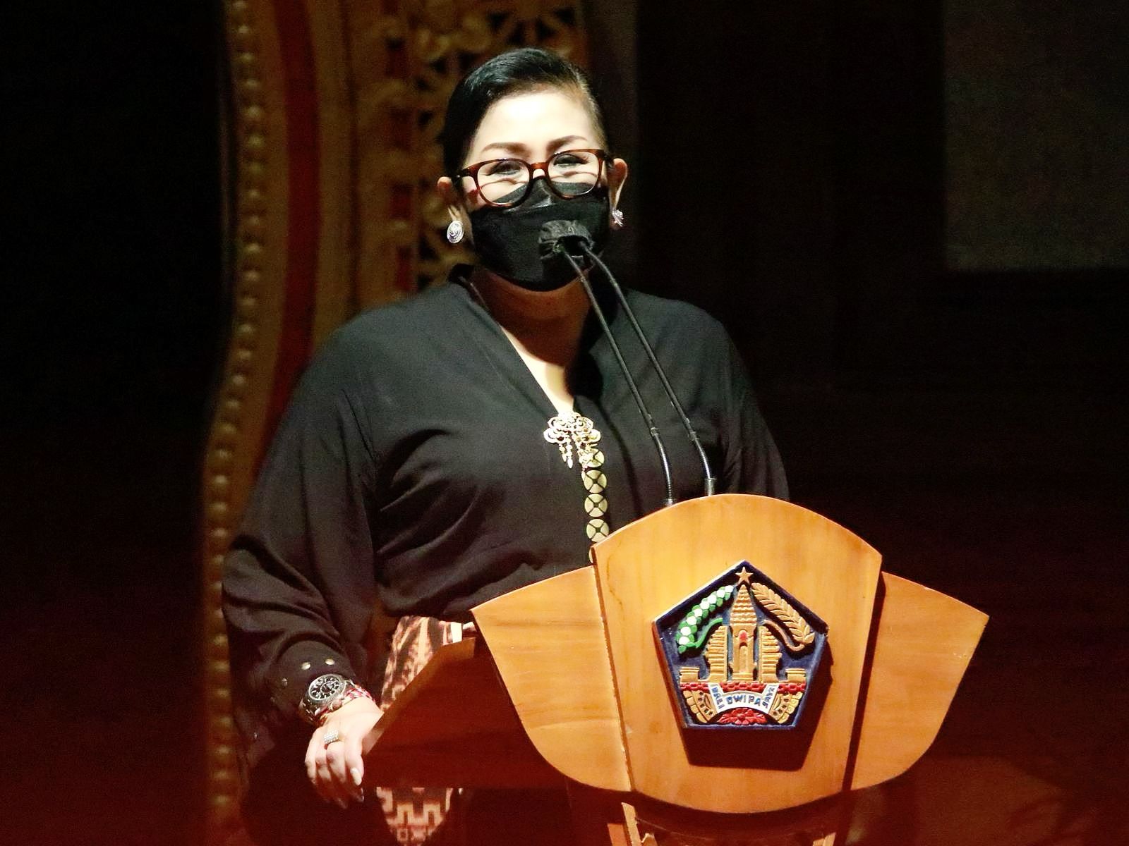 Pendamping orang nomor satu di Bali ini juga menyampaikan permasalahan industri sandang di Bali sesungguhnya sudah terjadi puluhan tahun namun tidak ada yang menyadari, tidak ada yang berteriak akan hal ini. Beruntunglah, Bapak Gubernur Bali Wayan Koster melaui Visinya Nangun Sat Kerthi Loka Bali mengingatkan kita kembali apa yang akan tergerus dan akan bisa hilang kedepannya karena perlakuan kita terhadap warisan nenek moyang. Untuk itu mari lakukan tugas kita bersama melestarikan warisan leluhur. Masyarakat Bali harus ingat akan tugas kita bersama melestarkan dan mengajegkan warisan nenek moyang.