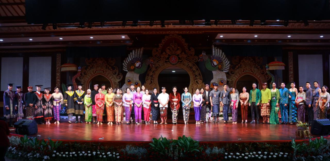 Disamping itu yang menarik dari perlombaan desain dan peragaan busana ini adalah juga memperlombakan busana wisuda jenjang perguruan tinggi yang menurut Ketua Dekranasda Bali tidak lain merupakan ide orisinil dari Bapak Gubernur Bali, Wayan Koster. “Dan ide orisinil dari Bapak Gubernur yaitu melombakan busana untuk wisuda. Ini keren banget. Ketika titiang lihat, ketika tampil, bagus-bagus, keren-keren, kreatif-kreatif,” puji Bunda Putri. Ia menambahkan jika desain-desain tersebut dapat diterapkan di masing-masing perguruan tinggi tentu akan memberikan multiplier effect yang sangat baik khususnya bagi penenun dan pengrajin kain tradisional Bali.