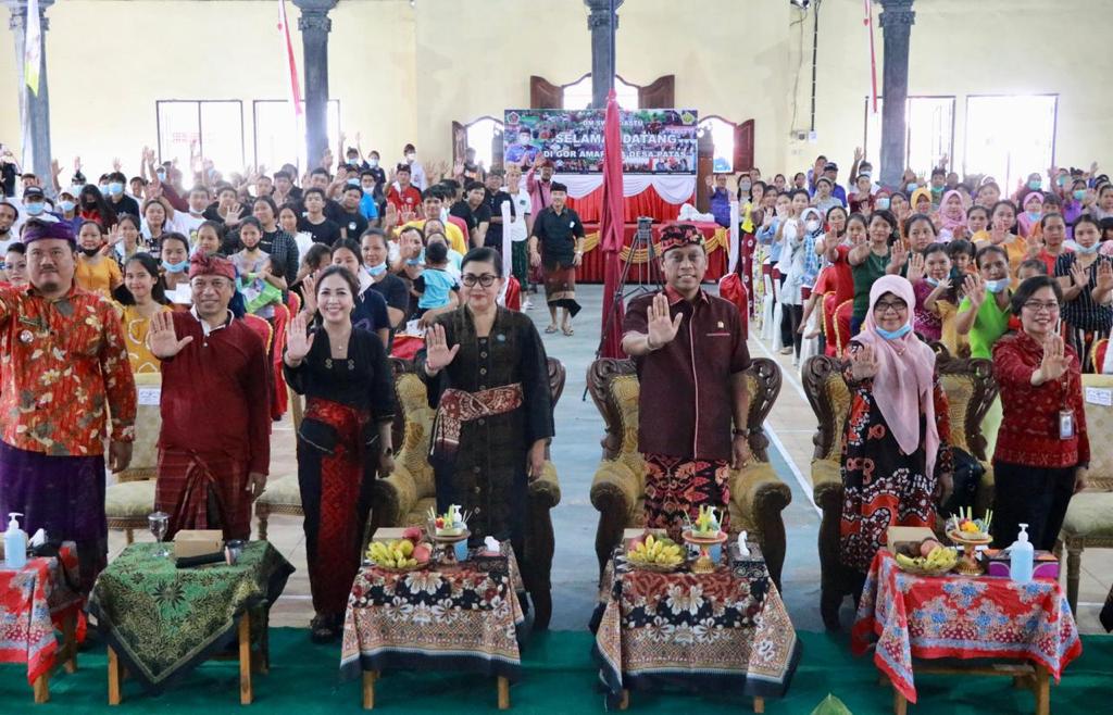 BALIPUSTAKANEWS,DENPASAR – Ketua TP PKK Provinsi Bali Ny. Putri Suastini Koster menghadiri Kampanye Percepatan Penurunan Stunting Tingkat Kabupaten/Kota Provinsi Bali yang diselenggarakan di GOR Amartha Desa Patas Kecamatan Gerokgak, Kabupaten Buleleng, Sabtu, Saniscara Umanis Medangkungan (13/8/2022). Kegiatan ini diselenggarakan BKKBN bekerjasama dengan Anggota Komisi IX DPR RI I Ketut Kariyasa Adnyana.