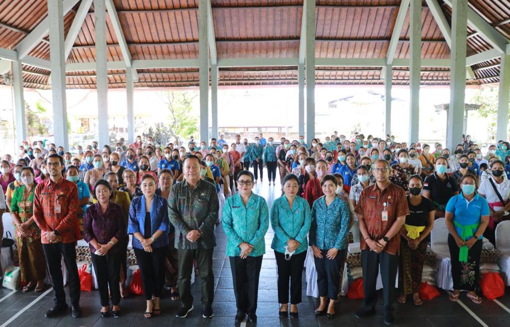 Ny. Putri Koster dalam sambutannya menyampaikan bahwa bansos penanganan inflasi ini merupakan program Pemprov Bali, dengan sasaran kader PKK di dua wilayah yang telah ditetapkan yaitu Kota Denpasar dan Kabupaten Buleleng. “Saya dapat tugas menyerahkan bantuan sosial untuk meringankan beban masyarakat di tengah tekanan inflasi yang melanda daerah Bali,” ucapnya. Diterangkan olehnya, Bali sempat berada di peringkat tujuh dalam rata-rata tingkat inflasi secara nasional. Menurutnya, inflasi antara lain dipicu ketidakstabilan harga kebutuhan pokok seperti cabai, kebijakan pemerintah menaikkan harga BBM dan mulai maraknya upacara pasca membaiknya pandemi Covid-19. Namun ia bersyukur karena masyarakat Pulau Dewata relatif tenang dalam menyikapi gejolak harga sejumlah bahan kebutuhan pokok.Ia berharap, bansos yang disalurkan pemerintah ini dapat meringankan beban masyarakat dalam menghadapi situasi sulit. Ditambahkan olehnya, ini merupakan wujud kepedulian pemerintah terhadap kondisi masyarakat dan ia bersyukur karena yang dipilih adalah para kader PKK.