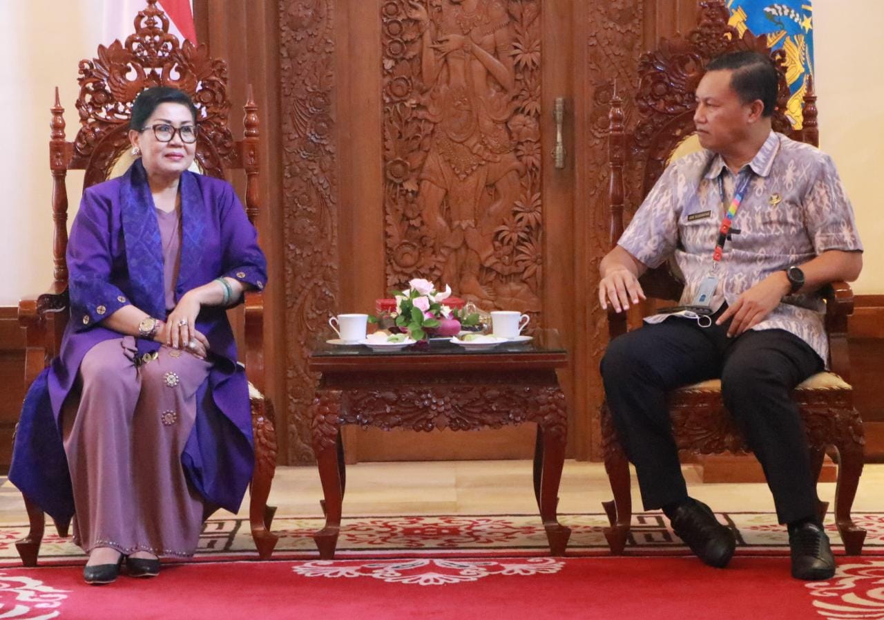 BALIPUSTAKANEWS,DENPASAR – Ketua TP PKK Provinsi Bali Ny. Putri Koster menerima audiensi dari Kepala Badan Narkotika Nasional Prov Bali Brigjen. Pol. Drs. Gde Sugianyar Dwi Putra,S.H., M.Si. beserta rombongan bertempat di Rumah Jabatan Gubernur Bali, Jayasabha, Denpasar pada Selasa, Anggara Wage Matal (16/7/2022).