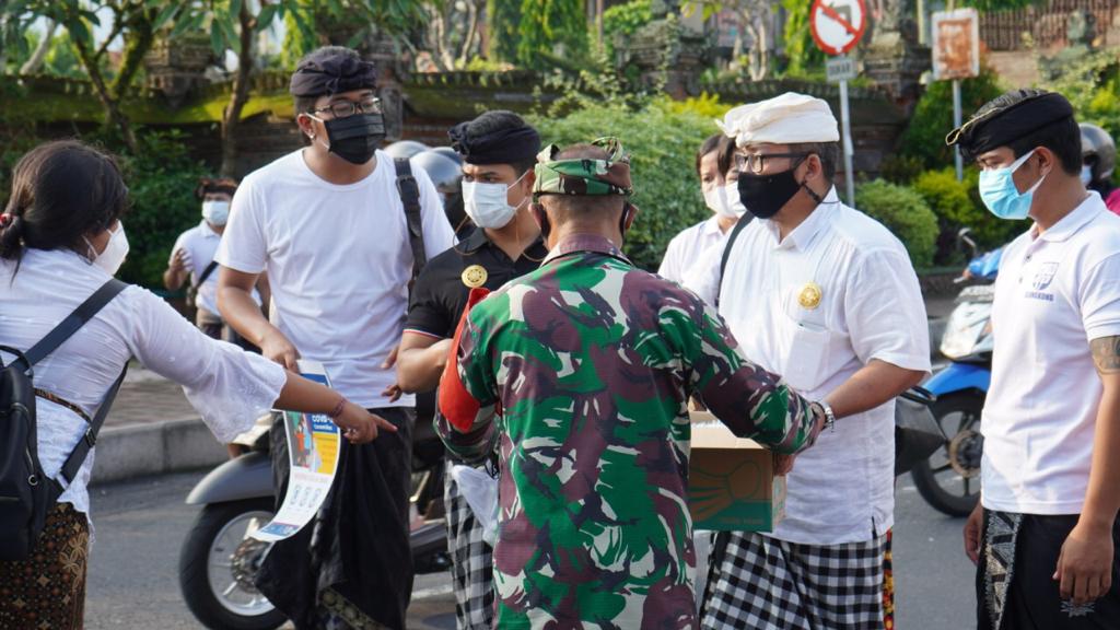“Masker yang kami bagi kepada masyarakat jumlahnya 2.000 dan menyasar 2 lokasi, yakni di Catus Pata Kota Klungkung dan di areal Pasar Senggol Klungkung. Dalam acara itu, kami juga memberikan dukungan kepada Tim Yustisi yang sedang sidak di Jalan Puputan dengan menyumbangkan masker serta handsanitizer (bantuan dari Tarra Health Care),” ujar Ketua DPD KNPI Klungkung, Anak Agung Gde Utama Indra Prayoga bersama Manggala Utama Pasikian Yowana Desa Adat Provinsi Bali, Ida Dewa Agung Lesmana.