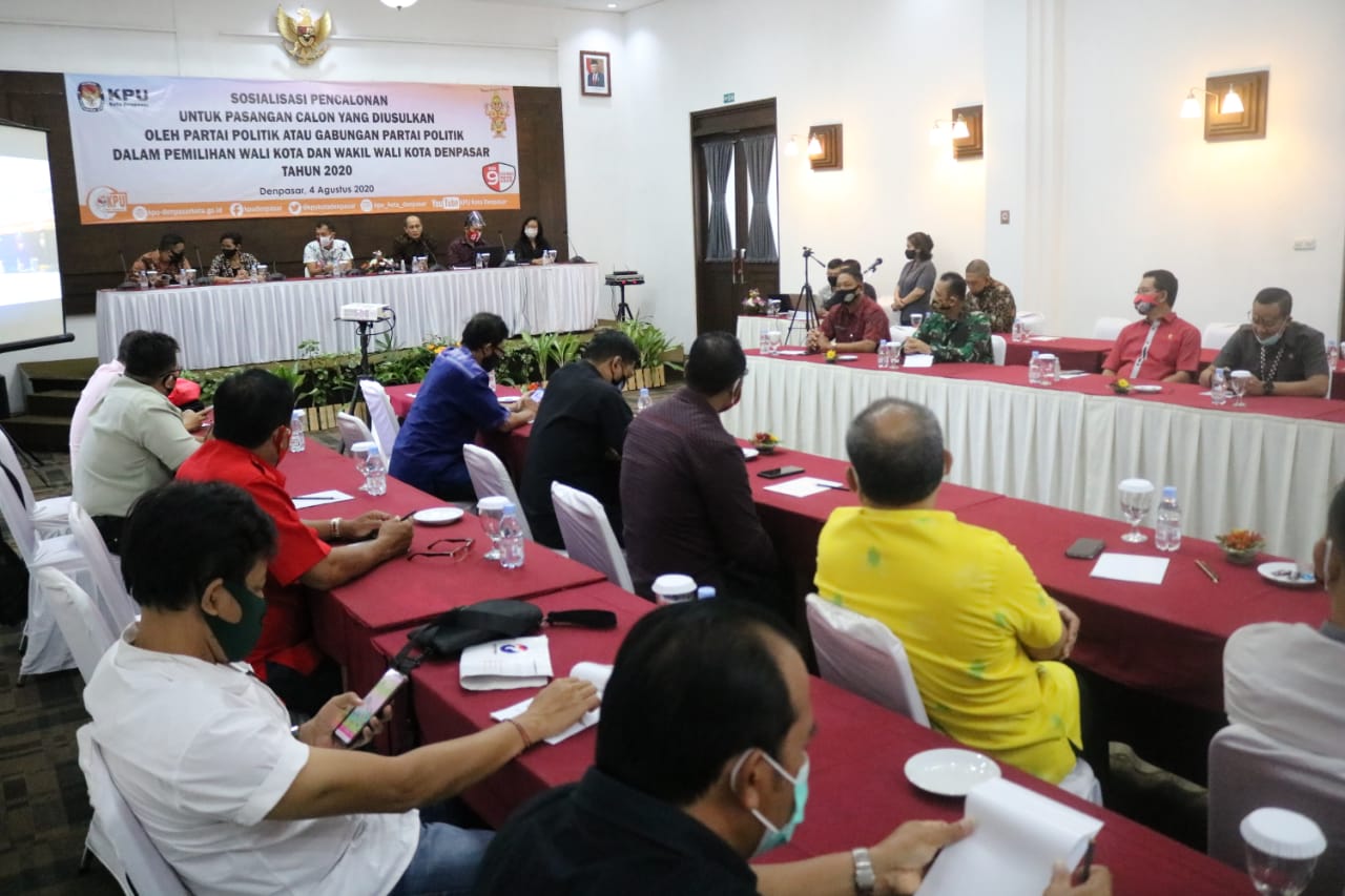 BALIPUSTAKANEWS – Komisi Pemilihan Umum (KPU) Kota Denpasar menyelenggarakan kegiatan ‘Sosialisasi Pencalonan untuk Pasangan Calon yang diusulkan oleh Partai Politik atau Gabungan Partai Politik Dalam Pemilihan Wali Kota dan Wakil Wali Kota Denpasar Tahun 2020’ pada Selasa (4/8/2020) di Denpasar.