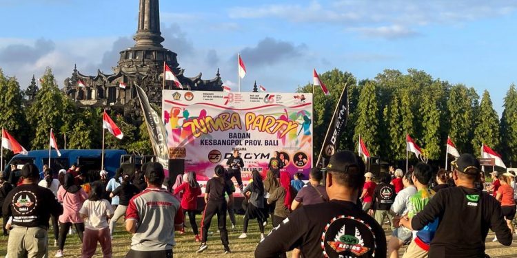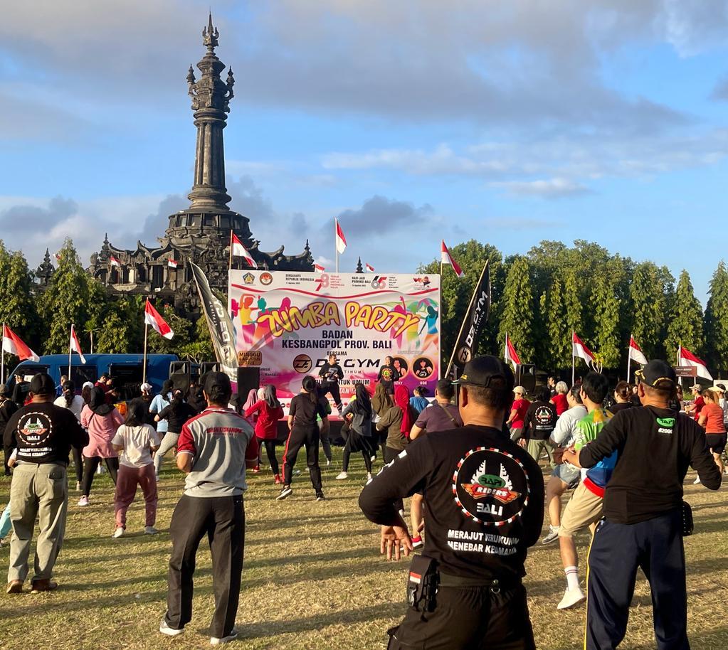BALIPUSTAKANEWS, DENPASAR – Berkolaborasi dengan De Gym Platinum Renon, Badan Kesatuan Bangsa dan Politik Provinsi Bali melaksanakan kegiatan Zumba Party bertempat di Lapangan Niti Mandala Renon Denpasar, Minggu, 6 Agustus 2023.