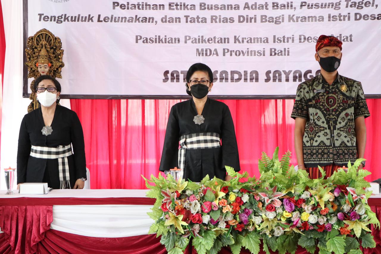 Namun dengan adanya globalisasi atau masuknya budaya-budaya luar, maka pelestarian etika busana, tata rias maupun tata rambut adat Bali harus tetap dilakukan. Demikian disampaikan Manggala Utama Pasikian Paiketan Krama Istri (PAKIS) Desa Adat Provinsi Bali Ny Putri Koster saat menggelar ‘Pelatihan Etika Busana Adat Bali, Pusung Tagel, Tebgkuluk Lelunakan, dan Tata Rias Diri Bagi Krama Istri Desa Adat se-Bali’ yang bertempat di Wantilan Desa Duda Timur, Selat-Karangasem pada Selasa (18/5).