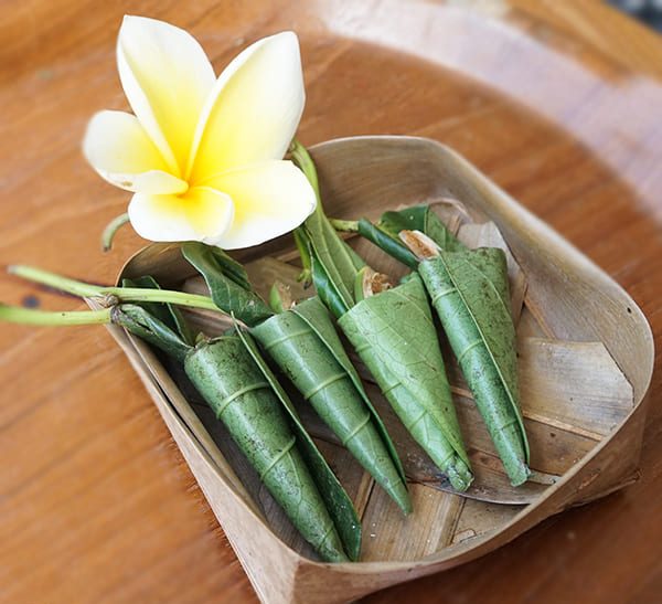 Ini caranya membuat porosan, terdiri dari: daun sirih, buah pinang, kapur, dan gambir, jika tidak ada gambir cukuplah buah pinang. Porosan adalah inti dari canang, inti dari banten. Kalau tanpa porosan bukan canang namanya bukan banten namanya, demikianlah keuatamaan porosan.