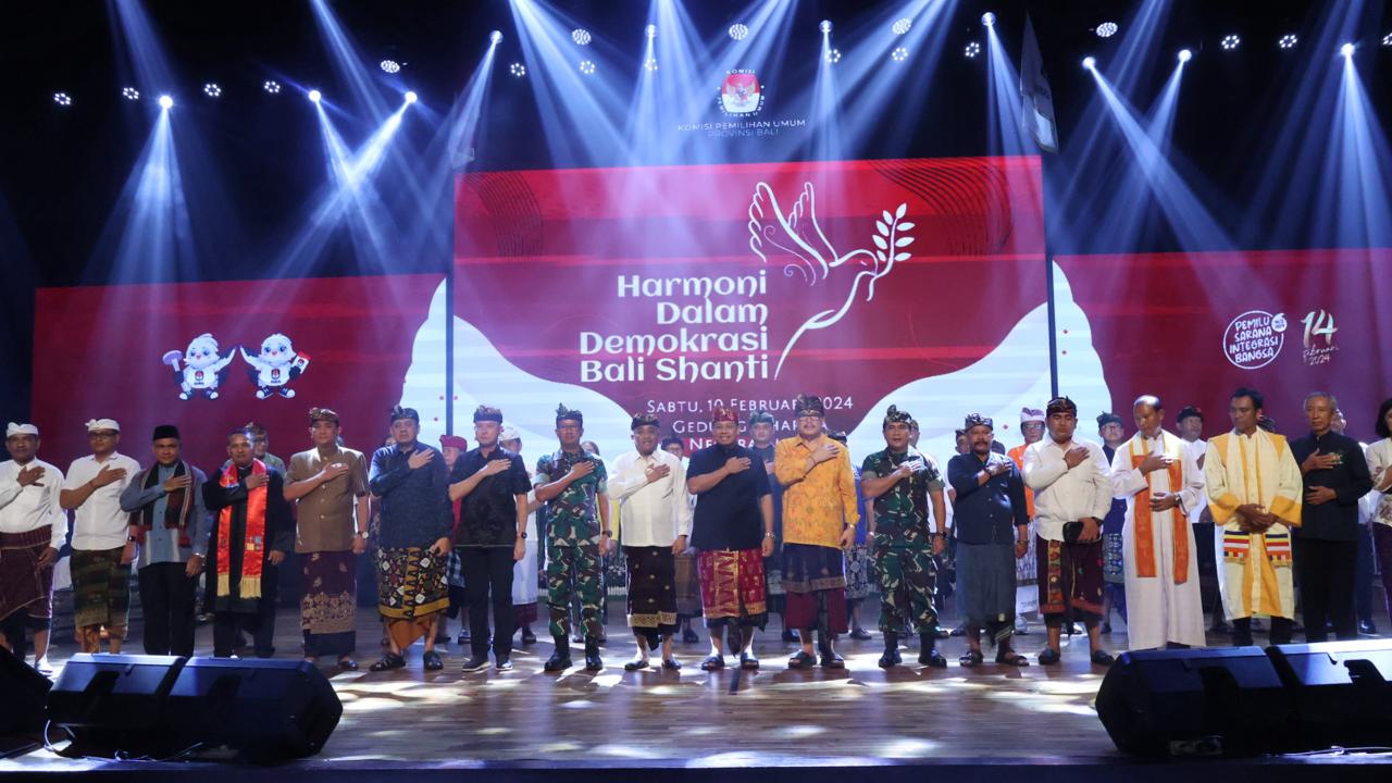Dalam acara yang bertajuk “Harmoni dalam Demokrasi Bali Shanti” turut dihadiri oleh Wakil Ketua DPRD Provinsi Bali, I Nyoman Sugawa Korry, Kepala Badan Intelijen Negara Daerah Bali, Brigjen TNI Agus M Latief,S.I.P, Ketua Bawaslu Provinsi Bali, I Putu Agus Tirta Saguna, Jajaran Forkopimda Provinsi Bali, kepala perangkat daerah terkait di lingkungan Pemprov Bali, tokoh agama, para pengurus partai dan undangan lainnya. Acara juga diisi dengan doa lintas agama serta persembahan “Nyanyian Dharma”. (PR)