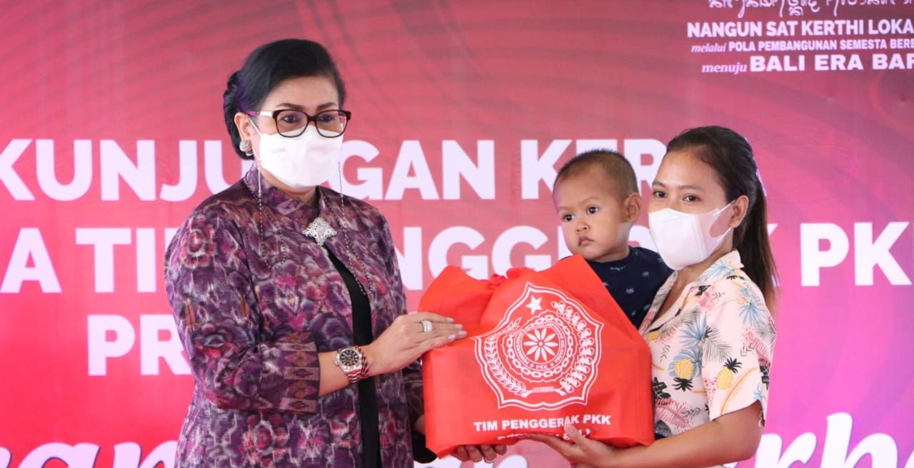 Pada kegiatan ini diserahkan bantuan bagi 10 orang balita gizi buruk/balita gizi kurang, 10 ibu hamil KEK, 10 lansia terlantar, 10 penyandang disabilitas dan 10 orang kader PKK kurang mampu. Bantuan yang diberikan bervariasi sesuai kebutuhan masing-masing antara lain, susu dan makanan tambahan untuk ibu hamil KEK dan balita gizi buruk dan gizi kurang. Selain itu, penerima bantuan juga memperoleh beras, handuk dan payung. Serta juga diserahkan majalah HATINYA PKK, Liflet HIV/AIDS dan masker yang diserahkan kepada TP PKK Kabupaten Badung.
