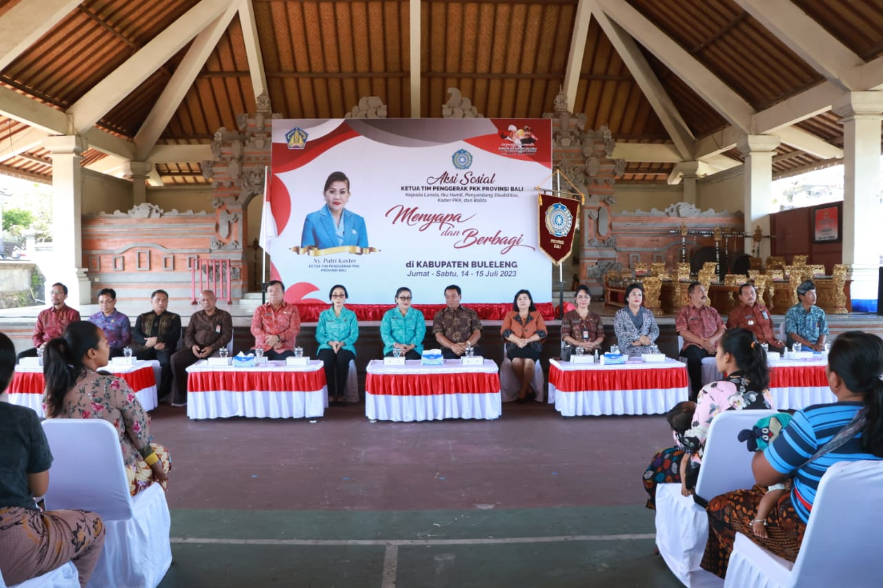 BALIPUSTAKANEWS, BULELENG – TP PKK Provinsi Bali melaksanakan aksi sosial ‘Menyapa dan Berbagi’ selama dua hari di wilayah Kabupaten Buleleng. Aksi sosial yang berlangsung Jumat (14/7/2023) dan Sabtu (15/7/2023) ini merupakan sinergi TP PKK Provinsi dan TP PKK Kabupaten Buleleng, didukung OPD terkait di lingkungan Pemprov Bali, Pemkab Buleleng dan Ikatan Bidan Indonesia (IBI) Provinsi Bali.