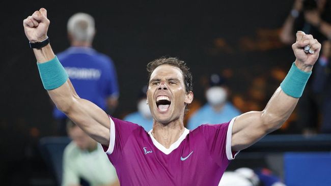 Trofi juara Australian Open 2022 direngkuh petenis Spanyol itu setelah mengalahkan unggulan kedua Daniil Medvedev di laga final pada Minggu (30/1/2022). Bertanding di Rod Laver Arena, Nadal yang diunggulkan di tempat keenam comeback dari tertinggal dua set sebelum menang 2-6, 5-7 (5), 6-4, 6-4, 7-5.