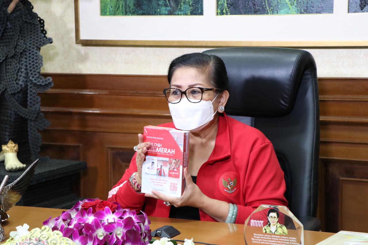 Masih dalam paparannya, Ny Putri Koster juga menyinggung pandemi Covid-19 yang berkepanjangan dan sangat dirasakan dampaknya oleh masyarakat dunia. Menyikapi hal ini, ia minta kalangan generasi muda tetap patuh dan taat terhadap anjuran pemerintah, khususnya terkait dengan penerapan protokol kesehatan seperti memakai masker, rajin mencuci tangan dengan sabun pada air mengalir, menjaga jarak/menjauhi kerumunan dan mengurangi mobilitas. Dari sederat prokes tersebut, perempuan yang akrab disapa Bunda Putri ini menggarisbawahi prokes menjaga jarak/menjauhi kerumunan. Karena sepengetahuannya, anak muda punya kegemaran nongkrong bersama teman-teman. Ia berpesan, untuk sementara waktu anak-anak muda bisa menahan diri dulu agar tak banyak keluar rumah dan kumpul-kumpul dengan teman.