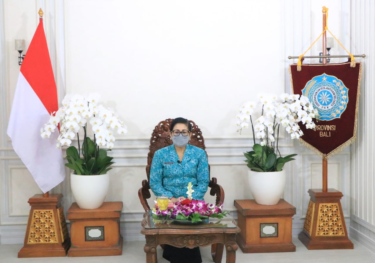 Demikian disampaikannya saat memberikan sambutan pada Webinar Keluarga PKK GAGAH BENCANA (Keluarga PKK Tanggap Tangguh Bencana) dengan tema “Bali Era Baru Berlandaskan Kekuatan Segitiga Sama Sisi : Pariwisata, Pertanian dan Kelautan, IKM-UMKM Tahun 2021” bertempat di Gedung Jayasaba, Denpasar, Rabu (13/10).