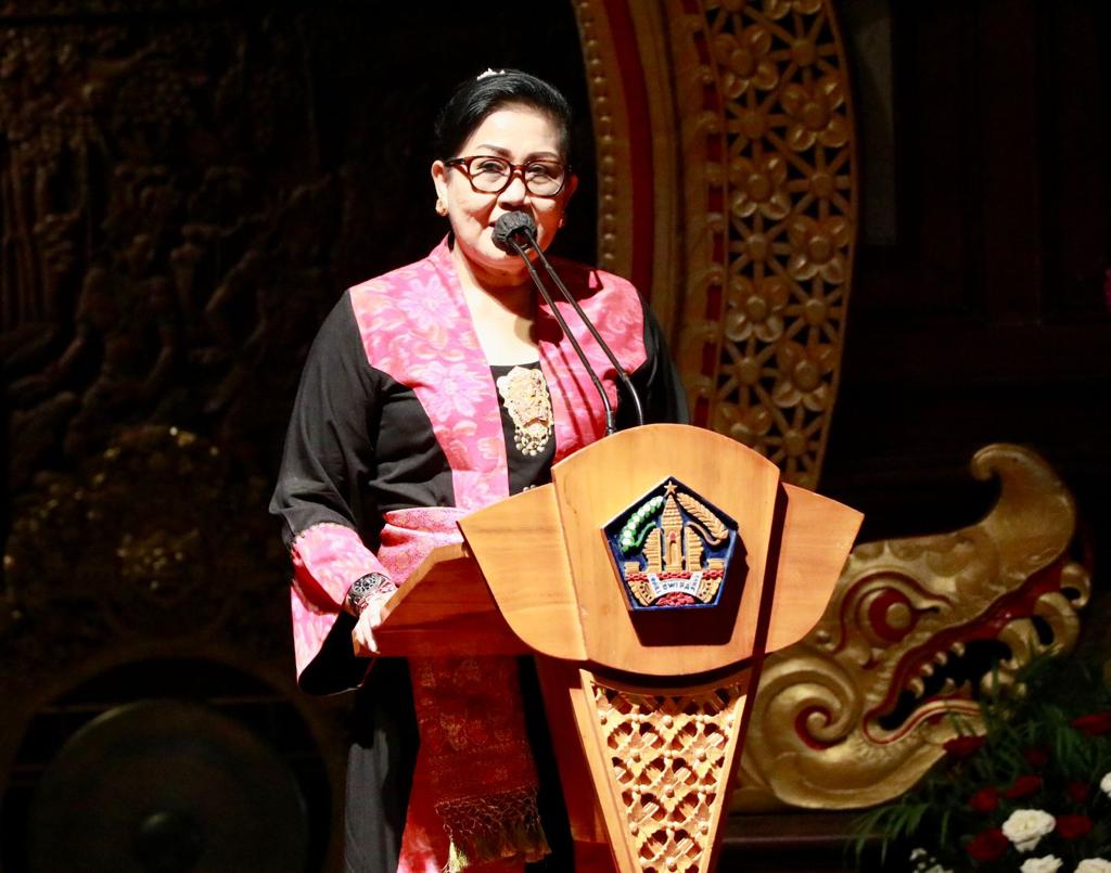 “Menjaga keluhuran warisan budaya leluhur menjadi tugas dan tanggung jawab kita bersama, jangan sampai waridan budaya yang sedari dulu dipertahankan, rusak dan punah oleh kita selaku generasi penerus yang tidak mau melatih tangan untuk menenun. Semisal kita tidak mampu berkarya dengan mencipta kain tenun endek, setidaknyalah kita turut berpartisipasi membeli dan menggunakannya, sehingga regulasi permintaan penjualan kain tenun endek akan mempengaruhi kuantitas pembuatannya, mari kita mulai dari diri kita terlebih dahulu,” ungkap Ketua Dewan Kerajinan Nasional (Dekranasda) Provinsi Bali Ny. Putri Suastini Koster dalam sambutannya saat kegiatan Fashion Show serangkaian mengisi Pameran IKM Bali Bangkit Tahap III Tahun 2022, di Gedung Ksirarnawa Taman Budaya Art Center, Kamis (14/4).