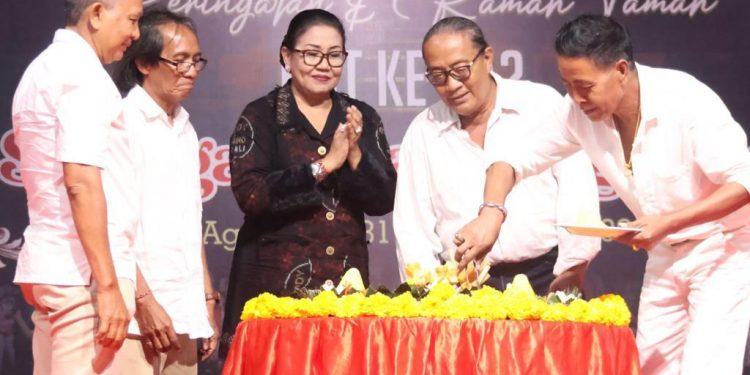 BALIPUSTAKANEWS, DENPASAR – Ny. Putri Koster yang dikenal sebagai seniman multitalenta menghadiri kegiatan ramah tamah serangkaian peringatan HUT ke-42 Sanggar Teater Agustus (STA) di Halaman Belakang Gedung Jayasabha Denpasar, Kamis, 24 Agustus 2023. Kegiatan ramah tamah juga dihadiri penggiat seni yang tergabung dalam Teater Mini dan beberapa sanggar lainnya.