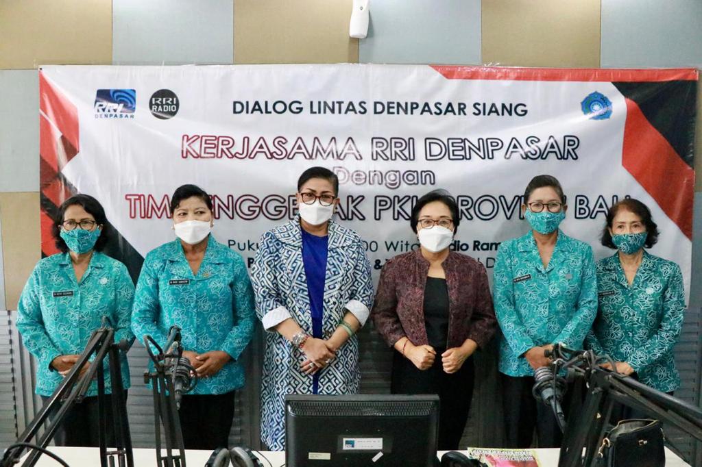 BALIPUSTAKANEWS,DENPASAR – Ketua TP PKK Provinsi Bali Ny. Putri Suastini Koster Menjadi Narasumber Dialog Lintas Denpasar Siang bersama Ketua LSM Bali Sruti Luh Riniti Rahayu, Tema “Implementasi Semangat Kartini Menuju Bali Era Baru”, di Studi RRI Denpasar, Rabu (6/4).