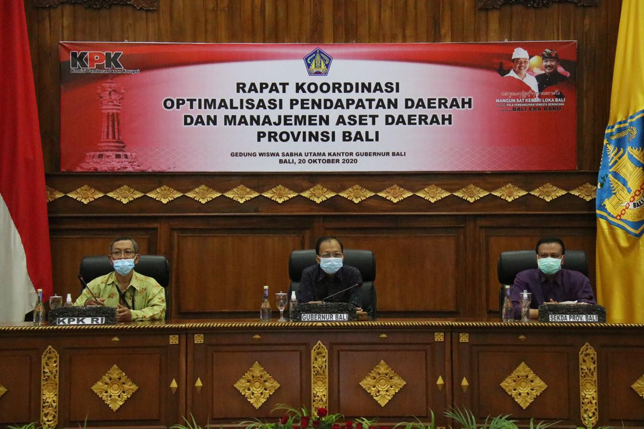 Oleh sebab itu, ia menyambut baik diselenggarakannya Rapat Koordinasi Optimalisasi Pendapatan Daerah dan Manajemen Aset Daerah Provinsi Bali yang menghadirkan Komisi Pemberantasan Korupsi (KPK) RI di Gedung Wiswa Sabha Utama, Kantor Gubernur Bali, Renon, Denpasar, Selasa (20/10).